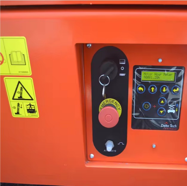Pomocou proporcionálneho joysticku sa pohyb upravuje plynulo pre presné zdvíhanie a jazdu. Rýchlosť jazdy je automaticky obmedzená pri zdvihnutej plošine pre zabezpečenie bezpečnosti. Na predĺženie pracovnej plošiny operátor uvoľní predĺžovací pedál a manuálne vysunie plošinu až do 0,9 metra. Núdzové spustenie je možné aktivovať pomocou ovládacieho ventilu zo zeme. Zdvihák je vybavený alarmami signalizujúcimi preťaženie, náklon alebo poruchu. Po použití musí byť plošina úplne spustená, napájanie vypnuté a kolesá zabezpečené pred nabíjaním.